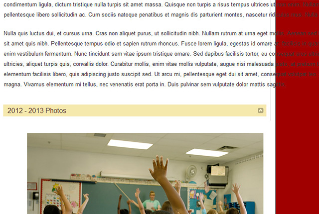 Most of the problems with too-large items that you are likely to run across involve tables, slideshow cards and images. Shown in the image below is an example of having too wide of a slideshow card (an oversized image may looks similar to this as well). These are both easy to change.